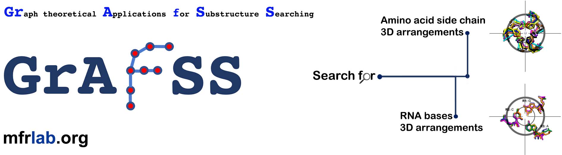 The GrAfSS (Graph theoretical Applications for Substructure searching) suite of programs allows users to search biological macromolecular structure data for specific 3D arrangements or motifs. This website is free and open to all users and there is no login requirement.